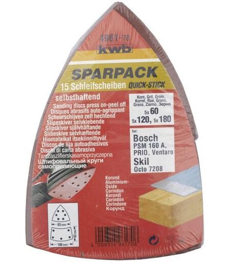Kwb 15 disques abrasifs triangulaires bois et métaux