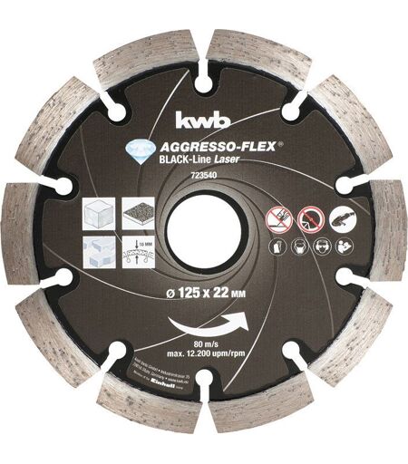 Disques diamant AGRESSO FLEX à segments soudés au laser, pour meuleuses d'angle. Disques diamant Black Line Laser pour granit, briques béton, béton lavé, toutes pierres naturelles et artificielles. Diamètre 125mm Alésage 22 mm Hauteur 7 mm Segment 1,9 mm ...