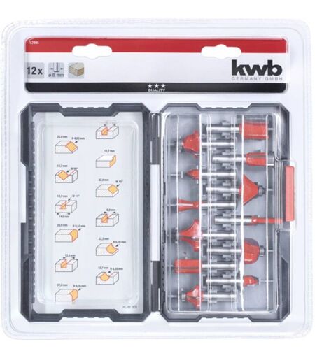 KWB - 757295 Jeu de fraises pour défonceuse Carbure de tungstène Diamètre de tige 8 mm 12 pièces Y707212