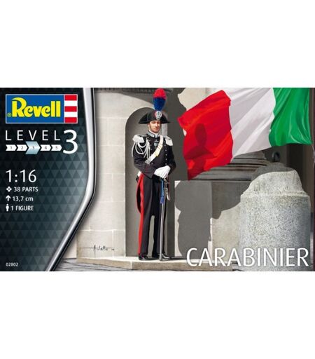 Figurine en plastique à monter et à peindre, représentant un Carabinier italien.38 pièces.1/16Hauteur de la figurine : 13.7 cm. Age minimum : 10 ans ...
