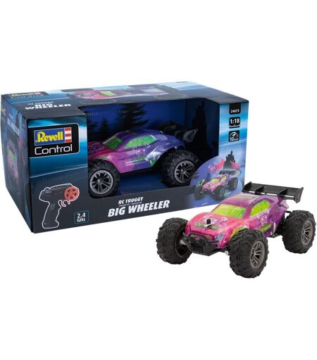 Revell 24673 Voiture RC Big Wheeler - - Revell Control RC Car Big Wheeler - Partez à la conquête de l'aventure tout-terrain ! - - Prenez le volant du RC Car Big Wheeler et vivez des courses tout-terrain dans une nouvelle dimension ! Ce véhicule d'exception a été créé pour les amateurs de tout-terrain et promet un plaisir de conduite inégalé. Compact mais puissant, il maîtrise tous les terrains sans effort. - - Avec une longueur de 240 mm, une largeur de 150 mm et une hauteur de 110 mm, la voiture RC se déplace en douceur sur des terrains difficiles. La suspension indépendante et les amortisseurs de haute qualité offrent une suspension impressionnante qui peut gérer facilement même les terrains accidentés. Qu'il s'agisse de routes de gravier, de dunes de sable ou de chemins boueux, le RC Car Big Wheeler ne connaît pas de limites. - - Le puissant moteur électrique et la batterie Li-Ion longue durée assurent un plaisir de conduite prolongé, tandis que l'éclairage spectaculaire du soubassement offre non seulement des visuels époustouflants, mais baigne également les courses nocturnes d'un nouveau jour. - - La technologie de télécommande 2,4 GHz de pointe assure un contrôle précis du véhicule et vous permet même de contrôler plusieurs voitures en même temps sans interférence - de sorte que rien ne s'oppose à un plaisir de course illimité avec des amis. - - Batterie rechargeable Li-ion - À partir de 6 ans ...
