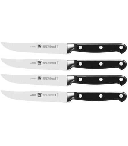 PROFESSIONNEL 'S' Un classique pour la cuisine professionnelle. TRADITIONNEL ET CLASSIQUE Les chefs professionnels du monde entier font confiance à la qualité et à la tradition de cette série de couteaux rivetés. La solidité de l'ensemble de l'acier et la fabrication sans soudure créent un excellent équilibre et une manipulation sûre. QUALITÉ La composition unique de l'acier ZWILLING J.A. HENCKELS représente l'équilibre parfait entre la teneur en chrome et en carbone - le secret d'un acier de première qualité. Les couteaux portant la marque FRIODUR sont le produit d'un traitement spécial de durcissement cryogénique qui renforce leur qualité. Ils conservent extraordinairement bien leur tranchant, sont particulièrement résistants à la corrosion et flexibles. FONCTIONNALITÉ Le n?ud assure le bon équilibre, il sert également de protection pour les doigts, les empêchant de glisser du manche à la lame. PRÉCISION Les couteaux portant la marque SIGMAFORGE sont obtenus par forgeage de précision à partir d'une seule pièce d'acier, pour une géométrie parfaite. Une condition fondamentale pour un affûtage de précision et les meilleures propriétés de coupe. LA FACILITÉ DE GESTION La continuité des lignes entre le n?ud et le manche assure une manipulation maximale. FORCE Un classique pour la cuisine professionnelle. La conception à 3 rivets et la soie sans soudure sont synonymes d'équilibre parfait. Lame parfaite pour couper les côtes et les steaks. ...