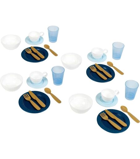 Theo Klein 9166 Service de Table - Jouet pour enfants - - Le petit déjeuner est prêt , est l'annonce joviale provenant de la chambre des enfants lorsqu'ils utilisent ce service de table. Les bols à céréales n'attendent qu'à être disposés à côté des élégantes assiettes bleu foncé et à briller à côté des tasses à café et des mugs. Et si tu veux de la salade au lieu des céréales, les jolis bols de service deviennent des bols modernes. Tous les plats du repas fantastique se mangent avec des couverts en or. Il n'y a que dans les chambres d'enfants et les cuisines de poupées que l'on peut déguster un repas aussi chic et délicieux. Service de table Le service de table pour enfants blanc et bleu, de haute qualité, est fabriqué en Allemagne. L'ensemble comprend quatre verres, quatre bols à céréales, convenant également à tout type d'usage, quatre assiettes plates et quatre services à café composés d'une tasse et d'une soucoupe. Les couverts dorés pour quatre personnes, comprenant fourchettes, couteaux et cuillères, sont particulièrement élégants. - - - Dimensions - 46 cm x 53 cm x 7 cm - À partir de 2 ans - - Attention : - Cet article est un jouet d'imitation pour enfants. ...