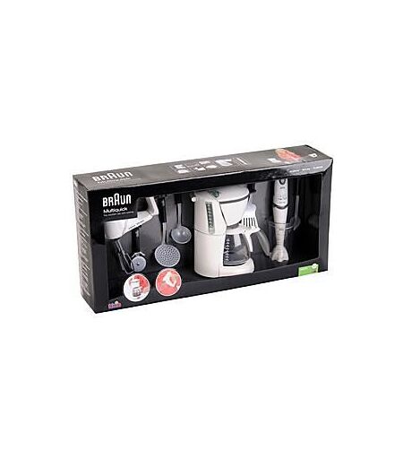 SET CUISINE avec - Mixer Braun (à piles) - Cafetière Braun (à piles) - Batteur-mixeur Braun (à piles) avec verre gradué - couteau à pizzas - cuillère pour pâtes - louche - spatule - écumoir - cuillère à mélanger ...