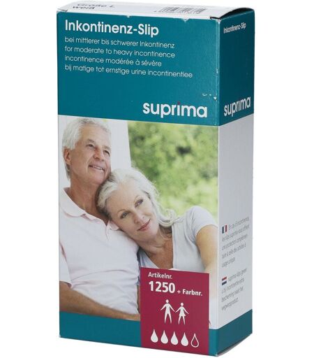 Suprima 1250 Slip PVC + Pressions Slip pour dames et hommes Avec élastique large règlable à la taille Idéal pour soigner les patients couchés (facile à enfiler et à défaire – raccourcit le temps des soins) Fond entre-jambes large: 30 cm, évitant une fuite en cas de langes trop mouillés Indications Pour incontinence grave Fermeture: pressions plastiques Coloris: blanc Tableau de mesure: TAILLE MESURE DE CONFECTION S 36/38 M 40/42 L 44/46 XL 48/50/52 Composition 100% PVC Conditionnement 1 slip ...