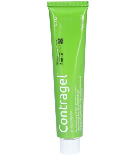 Contragel® vert est un gel contraceptif à utiliser avec les moyens de contraception que sont le diaphragme ou la cape cervicale.La sécurité de ces méthodes contraceptives est renforcée par l'utilisation de Contragel® vert.Mode d'actionContragel® vert forme une barrière mécanique supplémentaire devant le col de l'utérus grâce à la cellulose (gélifiant). L'acide lactique qu'il contient abaisse le pH vaginal. L'acidité accrue et la viscosité du gel ont un effet inhibiteur de la motilité sur les spermatozoïdes.Dès 1989 (Dittrich 1989), cette composition à base d'acide lactique a été jugée aussi sûre que les produits contenant du nonoxynol-9 dans une étude comparative de différents gels et crèmes pour diaphragmes, avec toutefois un potentiel d'effets secondaires nettement réduit.Application Avant d'insérer le diaphragme ou la cape cervicale, versez environ une cuillère à café pleine (environ 4 ml) de Contragel® vert dans le diaphragme ou la cape cervicale.Prenez également en compte le mode d'emploi de votre diaphragme ou de votre cape cervicaleRemarque :Contragel® vert n'offre aucune protection contre les maladies sexuellement transmissiblesContragel® vert appliqué sans diaphragme ou capuchon cervical n'offre aucune protection contraceptive soluble dans l'eau et compatible avec les préservatifs en caoutchouc naturel ou en polyuréthaneIngrédients :Eau, acide lactique, lactate de sodium, cellulose, acide sorbique ...