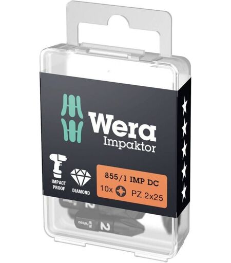 Informations techniques Forme (embouts) : D 6.3 Longueur : 25 mm Sortie : vis Pozidriv Taille (tournevis) : 2 855/1 IMP DC PZ 2 x 25 mm Embouts de haute qualité pour vis Pozidriv. La technologie d'impactore garantit des durées de vie supérieures à la moyenne, même en cas d'exigences extrêmes. Une résistance à la friction accrue grâce à un revêtement en particules de diamant rugueux sur la pointe de l'embout empêche le glissement de la vis. Parfaitement adapté aux visseuses à percussion ou à impact courantes. Six pans 1/4, adapté pour support selon DIN ISO 1173-D 6,3. * Pozidriv = marque déposée de la société European Industrial service Ltd. Ce texte a été traduit par une machine. Configuration requise null ...