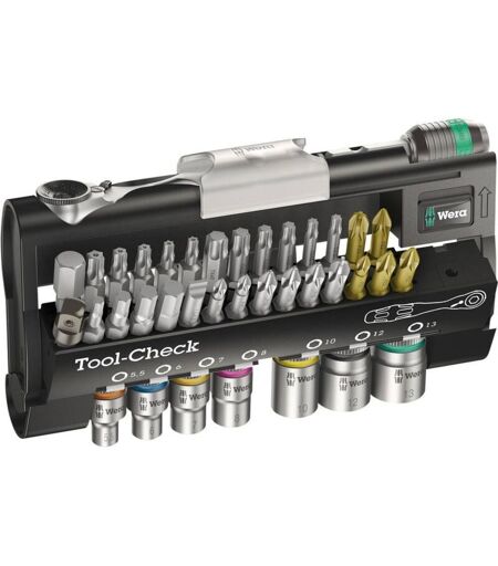 Tool-Check 1 sb 05073220001 Jeu d'embouts 32 pièces vis à fente, cruciforme Phillips, vis Pozidriv, 6 pans intérie - Wera