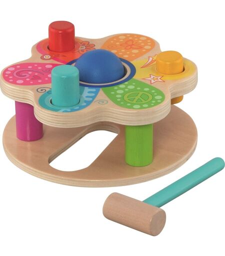Découvrez ce joli banc à marteler en bois au design floral et coloré. Votre enfant va s'amuser à frapper la boule et les 3 bûchettes en bois à l'aide du marteau pour les faire passer à travers les ouvertures situées sur le dessus. C'est un bon exercice pour stimuler ses compétences motrices. Toutes les pièces ont été frappées ? Il suffit de les remettre en pla ...