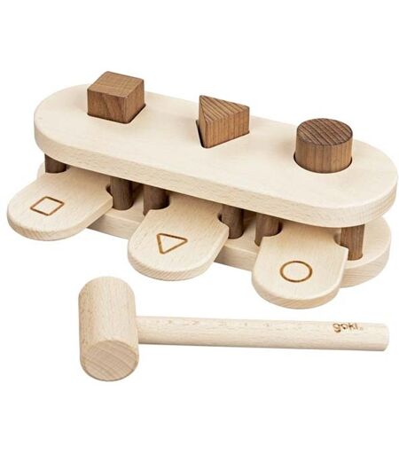 Jeu d'éveil et de manipulation en bois ! Rien de plus amusant que de faire sauter les pièces en bois. Triez les formes, donnez un coup de maillet sur les plaques des symboles et les blocs sautent ! Idéal pour les tout petits, ce jeu leur apprendra la motricité, la concentration et le jeu des formes. 5 pièces en bois naturel : 1 marteau , 1 base + 3 formes Convient pour les enfants à partir de 1 an. Matière : Pièces en Bois. Dimensions de la base : 21 x 12 x 7 cm En savoir plus sur GOKI : La société GOKI propose des jeux et jouets d'une grande qualité à un prix avantageux, afin que le jouet de valeur reste abordable par la majorité. La marque se distingue par des designs fonctionnels, des couleurs actuelles et la constante recherche du plaisir de jouer. Tous leurs jouets sont conçus dans l'optique de développer et entretenir les fonctions motrices, sensorielles ou cognitives des petits. Fabricant : Goki, entreprise Allemande de renommée (fabrication Europe et Asie) ...
