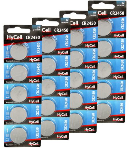 Piles bouton CR2450 3V 540 mAh (lot de 20) - Hycell