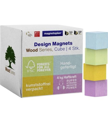 Informations techniques Capacité de charge (max.) : 4 kg Couleur : rose, orange clair, vert clair, bleu clair Dimensions produit, hauteur : 20 mm Dimensions produit, largeur : 20 mm Longueur : 20 mm Matériau (détails) : Bois de bouleau magnétique : oui Magnetoplan Design Magnetts Wood Series, Cube, coloris assortis, 4 pièces, certifié FSC Découvrez nos aimants en bois stylés pour votre bureau, Homeoffice et maison. Avec amour fait à la main en bois de bouleau massif certifié FSC, dans 4 tons pastel, ils sont également disponibles dans 8 couleurs vives ainsi que dans le bois de bouleau et de noyer. Chaque aimant est un Unicat personnel en raison de sa texture individuelle en bois et de sa coloration naturelle, et apporte ainsi un petit morceau de nature à vos espaces de travail ou de vie. Ces aimants en bois uniques adhèrent aux tableaux blancs, aux tableaux en verre magnétiques et Magnetoplan ainsi qu'à d'autres surfaces ferreuses grâce aux aimants en néodyme extra-puissants ...