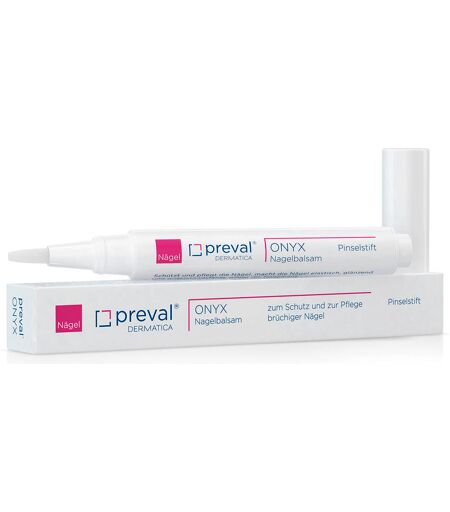 preval ONYX régénère les ongles et les cuticules, sèche rapidement et donne aux ongles une brillance satinée. Le baume pour les ongles contient du chitosan, une substance qui se lie à la kératine de la plaque unguéale et forme une couche protectrice contre les influences extérieures. Le panthénol et le phytantriol augmentent le taux d'hydratation de l'ongle et améliorent son élasticité. augmente la teneur en humidité dans l'ongle et assure une meilleure élasticitésoutient la fonction de barrière naturellerégénère les ongles et les cuticules abîmésprotège l'ongle des influences extérieures et des propriétés desséchantes du dissolvant pour vernis à onglessèche rapidement et convient comme base de soin pour le vernis à onglesune utilisation en cure de quatre à six semaines peut déjà améliorer nettement la texture des ongles.les cuticules sont soignées et leur extension sur la plaque de l'ongle est réduite en cas d'utilisation régulière Application : cliquer jusqu'à ce que le pinceau soit humidifié. Selon les besoins, badigeonner les ongles et les cuticules plusieurs fois par jour. Preval Dermatica est un fabricant de produits dermocosmétiques de haute qualité dans le domaine des soins médicaux de la peau, développés depuis plus de 40 ans en collaboration avec des dermatologues renommés. En cas d'états cutanés très secs, sensibles et sujets aux démangeaisons, ainsi que d'ongles cassants et fragiles, les préparations preval favorisent la régénération de la barrière protectrice endommagée et garantissent ainsi une peau, des cheveux et des ongles sains et résistants. ...