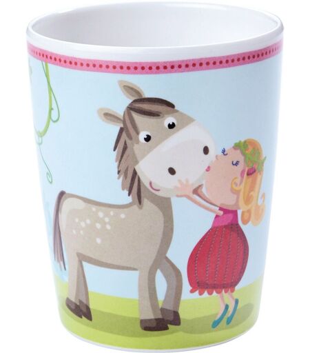 Haba 300388 Tasse Vicki & Pirli - - Avec un doux bisou, Vicki montre à son petit cheval Pirli combien elle l'aime. Le gobelet HABA Vicki & Pirli est tout simplement magique. Cet adorable gobelet pour enfants permet aussi à la meilleure amie de savourer son chocolat chaud. - - Ce gobelet de 9,5 cm de haut est fabriqué en mélamine robuste. C'est pourquoi il résiste bien à l'agitation qui règne autour de la table du petit-déjeuner. Le gobelet en mélamine peut même passer au lave-vaisselle et est donc particulièrement facile d'entretien. Ainsi, le magnifique gobelet HABA Vicki & Pirli n'enthousiasme pas seulement les petites filles, mais aussi maman et papa ! - - Détails : - - - Aptitude : Lave-vaisselle - Poids du produit : 0,102 kg - Capacité de remplissage : 200 ml ...