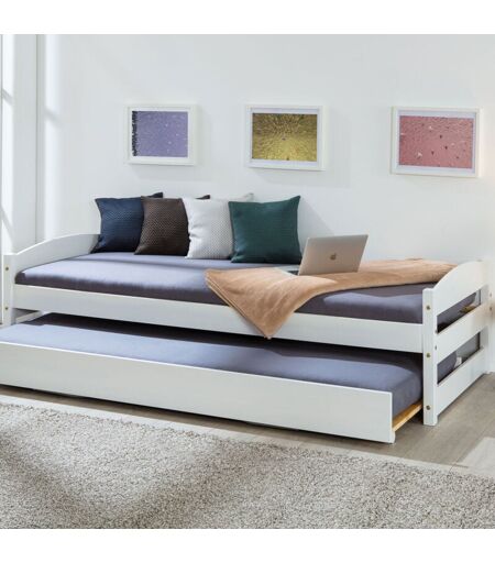 Inter Link - Lit gigogne 90x200 cm en pin massif blanc - chambery