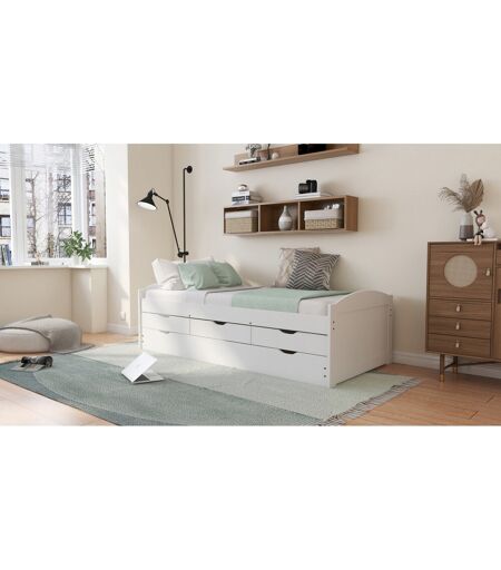 3Suisses : Offrez vous des nuits paisibles avec le Lit en Pin Massif 90x190 ULLI Blanc. Ce lit en bois massif laqué blanc trouvera sa place dans une chambre d'amis ou une chambre d'enfants. Détails pratiques : deux couchages séparés et de 4 tiroirs pour tout ranger facilement. Convient à une surface de couchage de 90 x 190 cm. Livré avec le sommier à lattes. Matelas non inclus. Arrive non assemblé. Couleur : Blanc Matière : Pin massif et imitation bois Dimensions : L.195 cm x P.98 cm x H.63 cm Montage : À monter soi-même Couleur : Blanc Matière : Pin massif et imitation bois Dimensions : L.195 cm x P.98 cm x H.63 cm Montage : À monter soi-même Marque: 3S. x Home ...