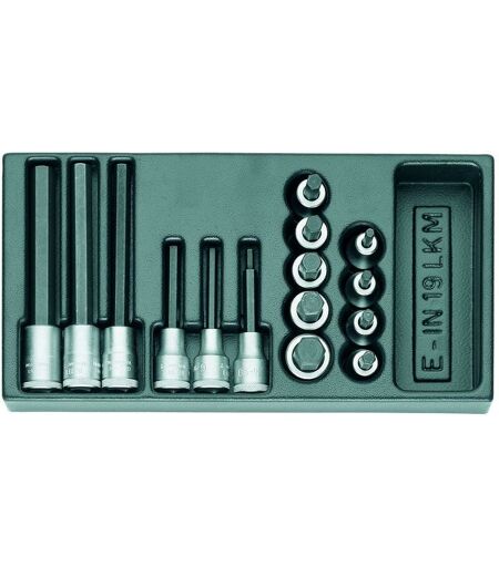 Fourni en 1500 modules ES, Fabriqué en plastique ABS résistant aux chocs, à grain noir, Résistant aux huiles et aux acides, Chaque outil est antidérapant dans son propre évidement, facilement amovible grâce à des poignées encastrées Largeur totale [mm] 158 mm Rangement ES-Kunststoffmodul Poids net [kg] 2,124 kg Certifié VDE Nein REACH konform Taille de l'emballage 1 Contenu (nombre de pièces) 1 Matériau ABS-Kunststoff Module d'inserts null Contenu null Hauteur totale [mm] 42 mm Liste de pièces (texte) IN 19 5 6 7 8 9 10 12 14 17 IN 19 L 5-90 6-90 8-90 10-140 12-140 14-140 Longueur totale 310 mm Équipement null ...