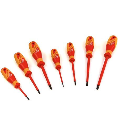 L'utilisation de tournevis isolés est nécessaire s'il y a une tension électrique sur la pièce et qu'il n'est pas possible de l'éteindre. Ce tournevis avec la marque de qualité VDE est garanti pour isoler une tension jusqu'à 1000 volts. Avec cet ensemble pratique et complet, vous pouvez tout faire vous-même. Spécifications: 7 tournevis isolés jusqu'à 1000 V. Traverse 3 pièces dans les tailles 0, 1 et 2.4 pièces pour tête plate ou coupée à la scie dans les tailles 2.5, 4, 5.5 et 6.5. Dans la boîte: 1 jeu de 7 tournevis Conseils: avant chaque utilisation, vérifiez si l'isolation est endommagée. Si l'isolation est endommagée: ne pas utiliser si la pièce est sous tension! À propos de la marque: Gedore produit des outils à main de haute qualité depuis 1919. Marteaux, tournevis, pinces, clés dynamométriques ou clés à douille: Gedore le fabrique. Des outils spéciaux pour l'industrie automobile et aéronautique font également partie de la gamme Gedore. ...