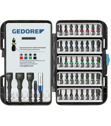 Le Gedore set de bits à torsion 666-045, 45 pièces, offre une sélection complète de bits de haute qualité pour une large gamme de travaux de vissage. La technologie de torsion absorbe les charges de pointe, réduisant l’usure du bit et offrant une meilleure protection de la tête de vis. L’ensemble comprend différents types et tailles de bits, rangés de manière ordonnée dans un coffret robuste pour une utilisation rapide sur chantier ou en atelier. Idéal pour la précision, la durabilité et des performances durables, que ce soit pour l’assemblage, l’entretien ou la réparation. Avec Gedore, vous choisissez la qualité et la fiabilité pour chaque application de vissage. ...