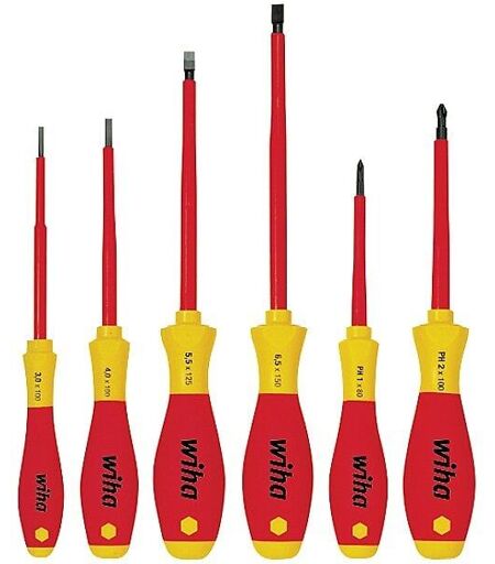 Détails : Tournevis SoftFinish Electricien isolé 1000 V c.a Manche ergonomique bi-matière avec protection antidérapante Lame entièrement trempée, finition brunie Isolation moulée directement sur la lame. Caractéristiques : Jeu comprenant : - Fente ...