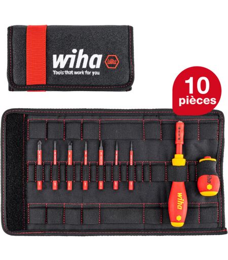 FITT Wiha - Jeu de tournevis et embouts slimVario® Fente, Pozidriv, PlusMinus/Pozidriv 10 pcs y compris une trousse repliable (41233)