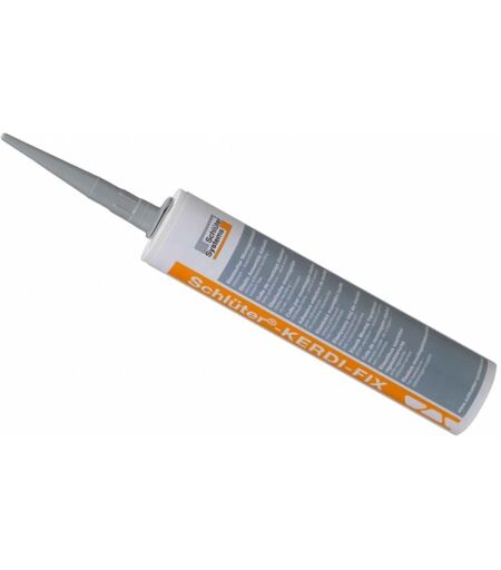 Colle de montage pour raccordements KERDI-FIX, de la marque SCHLUTER Colle de montage élastique à base de polymère MS. La colle KERDI-FIX convient pour : - le collage de certains profilés - l'étanchéité des points singuliers avec bandes Schlüter KERDI-KEBA, notamment sur les surfaces en acier inoxydable - L'assemblage des panneaux Schlüter KERDI-BOARD. Elle est la solution idéale pour réaliser les raccords étanches entre l'étanchéité composite Schlüter-KERDI et les autres éléments de construction, tels que les portes de balcons et de terrasses, les fenêtres, les garnitures en tôle ou les profilés de rive Schlüter-BARA. KERDI-FIX peut également être employé pour coller les panneaux Schlüter-KERDI-BOARD entre eux ou à d'autres éléments ainsi que pour coller de nombreux autres matériaux. Mise en œuvre Le support doit être suffisamment solide et porteur. La surface à traiter doit être favorable à l’adhérence et exempte de toute particule. Effectuer, le cas échéant, un essai sur place. ...