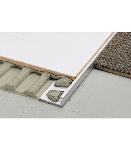 Aluminium anodisé mat - Hauteur 6 mm - Barre de 2,5 m - Fournisseur: SCHLUTER - Reference: AE60 - - Profilé - Pour revêtement de sol et de murs - Profilé pour la protection et la décoration des arêtes des revêtements carrelés - Finition: acier inox ou acier inox brossé ou aluminium ou aluminium anodisé mat selon le modèle - Léger - Facile à manipuler et utiliser - Profilé pour la protection et la décoration des chants de revêtements carrelés - Profilé pouvant être utilisé pour d’autres revêtements ou applications - Peut être utilisé en tant que profilé de transition entre différents types de revêtements (par exemple entre un carrelage et une moquette) - Peut être utilisé en finition de plinthe, en finition de nez de marche et d’angles sortants de murs, pour la délimitation de parties distinctes dans le cadre d’une pose décorative, et pour la finition de revêtements tels que moquette, parquet, stratifié, pierre naturelle ou autres - Grâce à la forme du profilé et à son angle à 87°, les ...