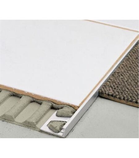 Description générale Profilé de finition en angle droit pour revêtements carrelés, ce produit haut de gamme est conçu pour assurer la protection et la décoration des chants de carrelage au sol. Il peut également servir de profilé de transition entre différents types de revêtements, convenant tant pour les projets neufs que pour la rénovation. Idéal pour une utilisation en intérieur dans les logements individuels ou collectifs, ce profilé offre une esthétique soignée et une répartition équitable des contraintes mécaniques. Spécifications techniques Matière : aluminium anodisé ou laiton selon le modèle Coloris : aluminium anodisé (gris argenté) ou laiton (doré) Finition : mat (pour le profilé en aluminium) Longueur : 2500 mm Épaisseur/hauteur : 6, 8, 10 ou 12,5 mm selon le modèle Poids : 0,605 kg Compatibilité et accessoires Compatible avec divers types de revêtements rigides, ce profilé peut être utilisé avec des carrelages au sol et d'autres matériaux similaires. Il peut être associé ...