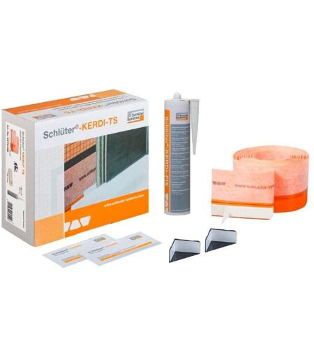 Schlüter ®-KERDI-TS Schlüter®-KERDI-TS est un kit permettant de garantir l’étanchéité entre des éléments fixes (baignoires, receveurs de douche en acier émaillé, en acrylique ou en fonte) et le système Schlüter®-KERDI. Ce kit contient une bande d’étanchéité en polyéthylène, revêtue de non-tissé sur ses deux faces et comprenant une bande d’isolation acoustique autocollante, de la colle de montage Schlüter®-KERDI-FIX, des lingettes de nettoyage ainsi qu’un ou plusieurs angles de montage (selon le kit). Le set complet comprend : 3,8 mètres de bande d'étanchéité 290 ml de colle de montage Schlüter-KERDI-FIX 2 chiffons de nettoyage 2 angles de montage ...