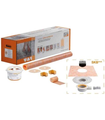 Kit d'étanchéité Schlüter-KERDI-SHOWER-SKB pour douches à l'italienne avec évacuation de sol Présentation du produit Le Kit d'étanchéité Schlüter-KERDI-SHOWER-SKB est une solution complète pour l'étanchéité des douches à l'italienne avec évacuation de sol. Ce kit permet une installation fiable et durable, comprenant tout le nécessaire pour étanchéifier les murs, sols, angles rentrants, et les passages de tuyaux. Le kit est proposé en différentes dimensions pour s'adapter à la taille de votre douche à étancher. Contenu du Kit Schlüter KERDI (natte d’étanchéité) Schlüter-KERDI-KERECK/FI (éléments préformés pour angles rentrants et passages de tuyaux) Schlüter-KERDI-KEBA (bande d’étanchéité) Schlüter-KERDI-COLL-L (colle étanche) Schlüter-KERDI-KM (collerettes d'étanchéité) Schlüter-KERDI-DRAIN-BASE (kit d’évacuation au sol et kit grille/cadre) Remarque : L'évacuation de sol Schlüter-KERDI-DRAIN-BASE est uniquement incluse dans le kit Schlüter-KERDI-SHOWER-SKB, mais pas dans le kit ...