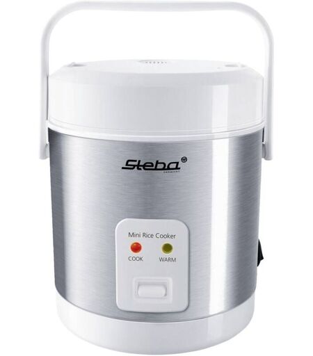 Rk 4M Cuiseur à riz acier inoxydable, blanc voyant lumineux, revêtement anti-adhésif, avec verre doseur - Steba