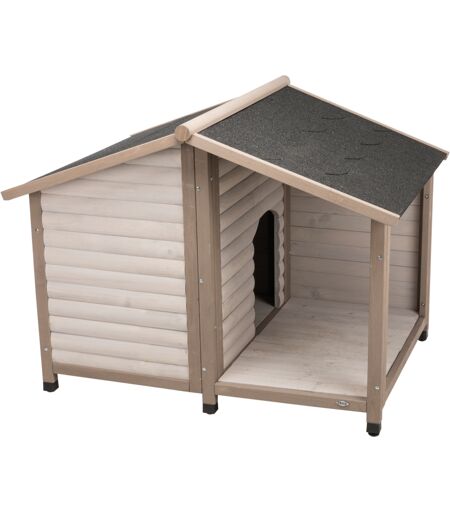 Niche Trixie Natura Lodge avec terrasse pour chien - Taille M/L: l 130 x P 100 x H 105 cm, gris