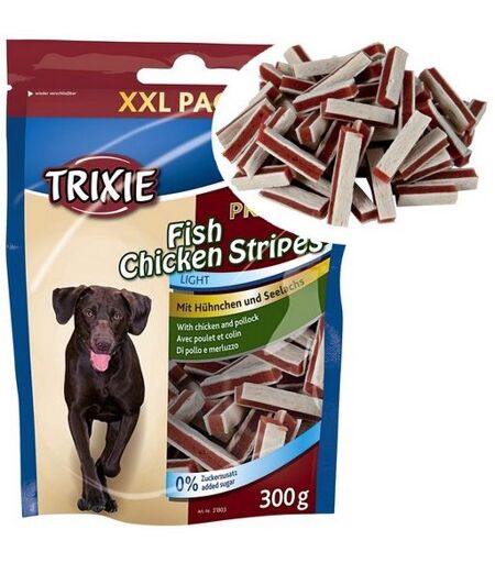 Friandises bâtonnets poulet / colin Désignation : Friandise pour chien Conditionnement : 300 g Trixie 31803