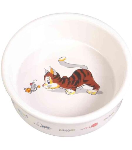 Trixie Ecuelle Céramique Avec Motifs Pour Chats - 0,2 L/Ø 12 Cm, Blanc