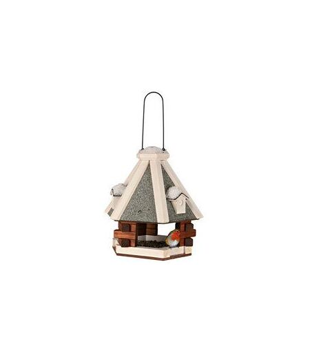 Ambiance chalet sous la neige pour cette élégante mangeoire conçue pour abriter les graines offertes aux oiseaux du ciel ! Pin vernis, prolongement de toit avec couverture minérale. Remplissage facile. Dimensions : Ø 36 x H 35 cm. ...