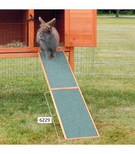 Article référence 6229 - en pin verni - pour petits clapiers et enclos - facilite les entrées et sorties - à suspendre sur l'entrée - facile et rapide à agrandir avec d'autres rampes - surface sablée, adaptée aux griffes Dimensions: 20 × 50 cm ...