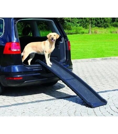 Rampe d'acces pour chien et autres animaux, 40 × 156 cm, noir - Plastique - Rails de sécurité latéraux recouverts anti-dérapants - Protege les coussinets des chiens - Tres recommandée en cas d'arthrose et d'arthrite - Peut etre utilisée préventivement - Pliable - Poids 4,5 kg - Pour tous usages - Facile a nettoyer - Jusqu'a 90 kg. ...