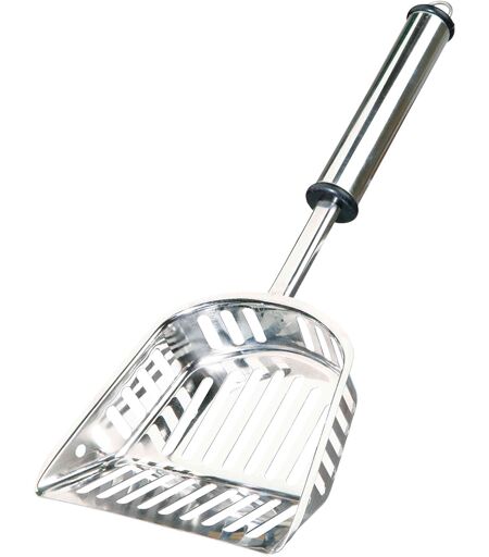 La pelle à litière robuste en acier inoxydable de Trixie te soutient dans le nettoyage facile de ton bac à litière. Grâce à sa structure, cette pelle convient à presque tous les types de litière courants et garantit que la litière reste propre... ...