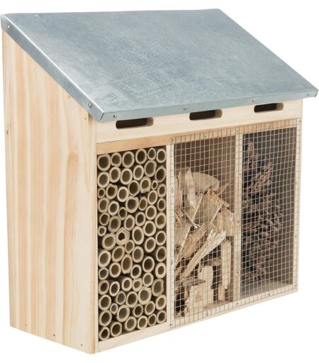 Hôtel pour insectes aide à l'hibernation et la nidification d'insectes utiles en pin verni/métal, galvanisé ...