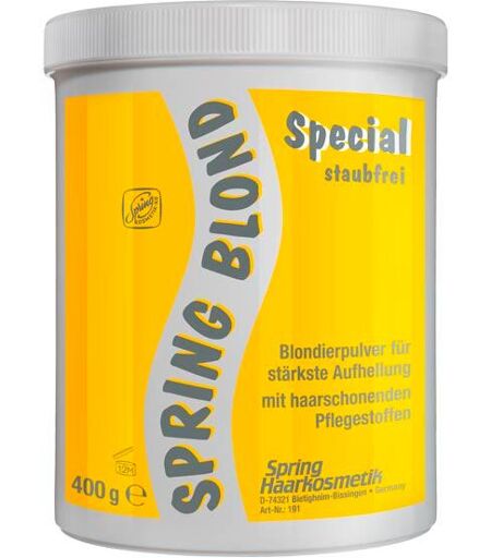 Poudre blonde pour un blanchiment plus fort avec des substances de soin protégeant les cheveux. Spring Blond Special est une poudre blonde sans poussière pour le plus fort degré de luminosité et adaptée à toutes les techniques de travail. Spring Blond Special ne sèche pas pendant toute la durée de l'application - avec ou sans chaleur. Elle reste souple, ne gonfle pas et ne coule pas. ...