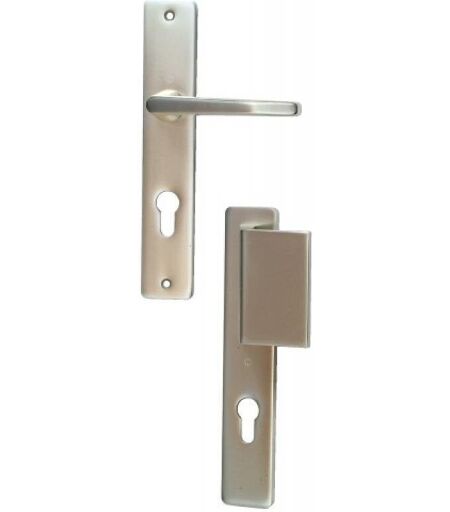 Ensembles portes palières sur plaquesEnsemble porte palière sur plaque en aluminium anodisé - Ton champagne - Entraxe 72 mm - Carré 8 mm - ZURICH En aluminium anodisé. Entraxe de fixation : 72 mm. Plaques de 218 x 39 mm. Saillie de la béquille : 74 mm. 10 Ans Garantie Description La gamme Pour serrures entraxe 70 mm et carré 7 mm. Le produit En aluminium anodisé. Entraxe de fixation : 72 mm. Plaques de 218 x 39 mm. Saillie de la béquille : 74 mm. Caractéristiques Fonction Clé I poignée palière Finition Champagne Unité de vente (1 ensemble) ...