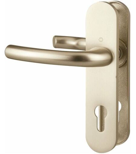 Idéale pour les portes d'entrée, les portes de garage ou les bureaux qui doivent être sécurisés Poignée de porte clé I, poignée de porte sur plaque Ensemble de poignées : béquille double Beige ivoire Entraxe de fixation : 195 mm Épaisseur de porte : 38 mm à 42 mm ...