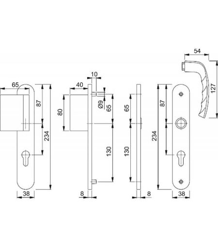 Ensembles portes palières sur plaquesEnsembles porte palière sur plaque en aluminium anodisé New York Entraxe de fixation : 195 mm. Plaques de 234 x 39 mm. Saillie de la béquille : 56 mm. Entraxe 70 mm, carré de 7 mm à montage rapide. 10 Ans Garantie Description La gamme Pour serrures entraxe 70 mm et carré 7 mm. Le produit Entraxe de fixation : 195 mm. Plaques de 234 x 39 mm. Saillie de la béquille : 56 mm. Entraxe 70 mm, carré de 7 mm à montage rapide. Caractéristiques Unité de vente (1 ensemble)Norme du produit DIN EN1906 ? Grade 3 : pour bâtiment publics à fréquentation élevée. Caractéristiques techniques Matière - finition Argent fonction Cylindre ovale Épaisseur de la porte (mm) 48 à 57 ...