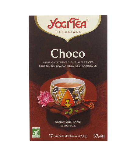 Un délicieux mélange réchauffant d’épices chaï et d’écorce de cacao, le YOGI TEA® Choco est depuis des années très populaire. Le cacao mélangé à la réglisse douce, la cannelle, le gingembre épicé et la cardamome donne une infusion presque paradisiaque. Détendez-vous, prenez une gorgée et inspirez l’arôme merveilleux du chocolat. À déguster sucré et avec un nuage de lait ou de substitut de lait. Le message subtil de cette infusion est : « L’indulgence délicieuse ». ...