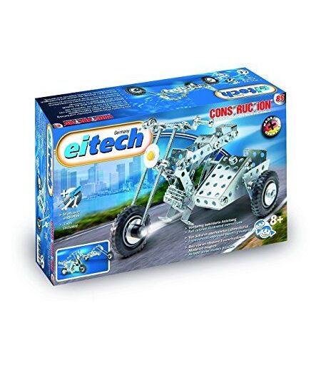 Vroom Build your very own motor bike and hit the open road Designed to promote fine motor skills, creativity and engineering prowess, Eitech sets feature stainless-steel interchangeable parts, leaving no boundaries for the imagination Tools and step by step illustrated instructions are included for easy to follow directions. Eitech is designed, engineered and manufactured in Germany. ...