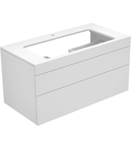 COPY Keuco Edition 400 Keuco lavabo 31582300100 Numéro d'article 31582300100 Peinture texturée blanche sur le corps et le devant avec trou pour robinet 2 coulisses avant avec technologie d'ouverture Push to Open et amortissement par traction avec couvercle en verre de 6 mm d'épaisseur fabriqué en usine brillant avec piège à odeurs en plastique adapté au lavabo 31580 - veuillez commander séparément - non inclus dans la livraison ...