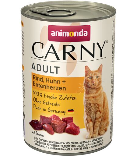 24x400g Adult boeuf, poulet, coeurs de canard Animonda Carny - Pâtée pour chat