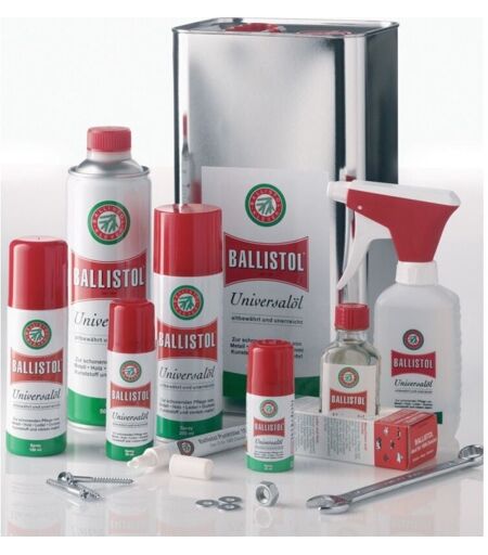 BALLISTOL Universal Oil • Huile spéciale pour l'industrie, le commerce et l'agriculture • Nourrit, protège et lubrifie tous les matériaux en métal, plastique, caoutchouc, cuir et bois • Désinfection efficace et neutralisés d'acides faibles tels que la transpiration • Creeps dans de minuscules fissures et recoins, ne gomme même après des années et la sécurité des aliments • BALLISTOL est médicalement pur et entièrement biodégradable • lubrifie la mécanique et protège contre la rouille, le bois en général, le cuir, protège contre la pourriture et la moisissure • Idéal pour le nettoyage de l'acier inoxydable et de l'aluminium • Convient pour le métal, le cuir, le plastique, le caoutchouc, le bois • Antirouille, huile de contact, huile pénétrante, huile de lubrification • Soins en cuir nettoie et soins • Acides neutralisés, ne vieillit pas, ne gomme • Désinfecte, conserves, dissout la saleté • Hypoallergénique, sans danger pour la santé Note: pulvérisation de 50 ml, spray de 100 ml, spray ...