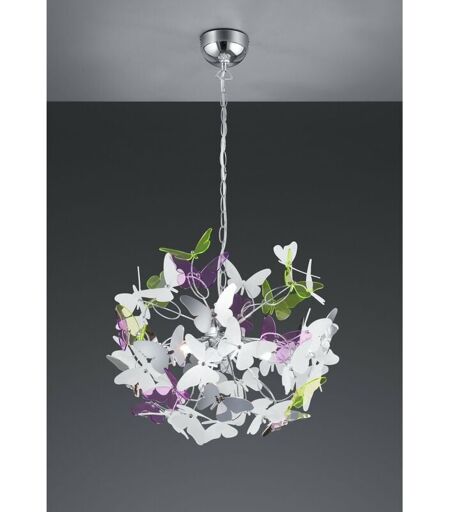 REALITY LEUCHTEN Suspension Papillon 4xG9 Chrome Papillons Multicolores Ø50 cm Trio Lighting