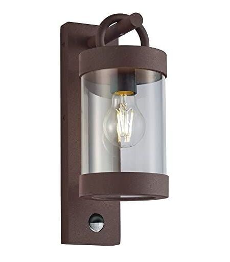 TRIO, Applique, Sambesi 1xE27, max.28,0 W Plastique, Transparent claire, Corps: Fonte daluminium, Rouille L:12,5cm, H:33,0cm, P:18,0cm Détecteur de mouvement,Montage au mur,IP44 ...